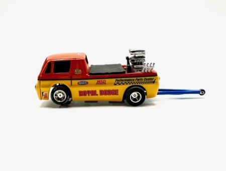 A must have. Serious custom by Mr. Matlock. Custom body on an old Tyco chassis. Big ass wheelie bars and a cool color combo